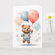 Carte Joli ours en peluche aquarelle flottant dans l'air