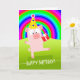 Carte Joli porc d'anniversaire sous ciel arc-en-ciel