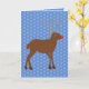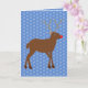 Cette carte impressionnante présente une image graphique d'un joli renne de Noël au nez rouge brillant. La Reindeer est brune et furieuse, elle a de grands bois et des sabots brun foncé. Son oeil est noir et elle a un grand sourire sur le visage. Des flocons de neige entourent le Reindeer et l'arrière - plan est bleu.