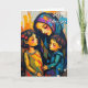 Belle illustration d'une mère avec deux enfants dans un art abstrait coloré. Carte de la Fête des Mères heureuse avec un message personnalisé à l'intérieur. Les couleurs utilisées sont le bleu, le violet, le jaune et l'orange.