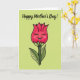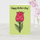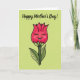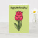 Jolie fête des mères avec une illustration vectorielle représentant un personnage de dessin animé floral ressemblant à une tulipe ainsi qu'une rose souriant joyeusement et un texte de salutation personnalisable. Cette illustration amusante du printemps présente des couleurs rouge vif et vert.