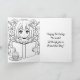 Une mignonne carte d'anniversaire pour une fille, petite-fille ou nièce avec une mignonne fille anime lire un livre entouré de fleurs et de notes musicales. À l'intérieur, vous pouvez ajouter son nom dans la zone personnalisée. Il y a aussi une page de coloriage à l'intérieur.