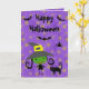 Carte Jolie sorcière, chat, chauves-souris et araignée v