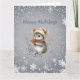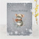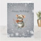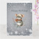 Une jolie souris grise habillée pour l'hiver avec un bonnet et une écharpe tient des baies et vous souhaite “Joyeuses Fêtes.” Elle est entourée d'un motif de flocons de neige blancs. Le message de vœux peut être facilement modifié selon vos préférences.
