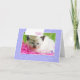 Une jolie carte de félicitations pour la remise de diplômes à la maternelle avec un chaton siamois mignon aux grands yeux bleus portant une casquette de graduation dans un lit de rubans roses chauds et encadré en violet.