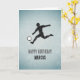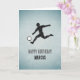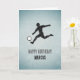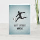Pour le plus grand amateur de football, une carte masculine avec un footballeur qui frappe la balle contre un arrière - plan à l'air d'acier avec un effet grungy cool. Idéal pour les garçons ados et les hommes adultes de votre vie qui aiment "le beau jeu" mais préfèrent un design plus masculin. Vous pouvez customiser à l'intérieur et aussi changer l'occasion ainsi que son nom sur la couverture, sous le graphique de sportsman look métal gravé.