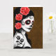 Cette conception inspirée du Jour des Morts présente une belle femme avec des motifs crâniens de sucre sur son visage. Trois roses apparaissent dans ses cheveux noirs à jet avec deux roses de plus tatoués sur son bras. La fille se tient sur le côté, la tête légèrement tournée vers le spectateur. Sa peau blanche pure se distingue vraiment par ses cheveux noirs et sa robe ainsi que par son arrière - plan brun foncé légèrement texturé. Ce design unique est une représentation époustouflante de ce Jour de la femme morte.