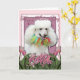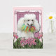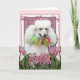 Carte Jour de mères - tulipes roses - caniche - blanc