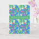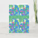 A pretty Mother's Day Card, with the greeting in German and a pattern of creamy White Mock Orange Blossom and bright pink Weigela on a bright blue background. The design is from a hand-painted watercolour by Judy Adamson. The inside is left blank for you to add your own message.
