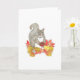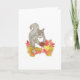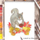 Souhaitez un bon Thanksgiving à vos amis et à votre famille ou envoyez simplement une carte d'automne avec ce charmant original aquarelle représentant un doux écureuil gris tenant une petite tarte aux noix de pécan (son préféré !) et assis dans un tas de feuilles de couleur automnale.