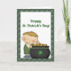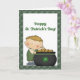 Une carte pour fêter la Saint Patrick avec peu de landes et une casserole d'or et de cadre shamrock.