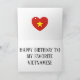Belle conception comprend des ballons heureux et des bandes-tiques avec les mots "Joyeux Anniversaire", recouverts aux couleurs du drapeau vietnamien. Le design est fini avec le coeur dans les couleurs du drapeau du Vietnam et le message d'anniversaire. Les éléments sont entièrement personnalisables à l'aide de la fonction "Customisez-le !". Cette carte d'anniversaire colorée est le cadeau parfait pour votre ami du Vietnam. © PaysDuMonde