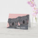 Une carte de la Saint-Valentin avec un couple de koalas illustrés sur fond rose. À l'extérieur, il est écrit "Joyeuse Saint-Valentin" et le message à l'intérieur peut être personnalisé à souhait grâce à la fonction de personnalisation. La carte parfaite pour une petite amie, une épouse ou une fiancée.