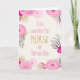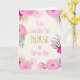 C'est une très jolie carte Nurses Day avec de magnifiques fleurs roses avec des détails de feuilles, de feuillage et de bourgeons, avec une petite quantité d'effet brillant d'or, mis contre un arrière - plan d'effet de lin crème pâle. Au centre de la carte, dans un joli rose, écrit à la main, est le texte "À un merveilleux INFIRMIER sur la journée des infirmières". © Natalie Kinnear Cartes www.greetingcarduniverse.com/nataliekinnearcards