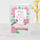 Une machine à écrire vintage rose entourée de fleurs et de feuilles avec un oiseau-poule perché sur la machine à écrire. Un morceau de papier de la machine à écrire a les mots manuscrits Happy 102nd Birthday Tante. Une belle carte d'anniversaire pour votre tante ! © Ness Nordberg