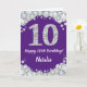 Joyeuse carte de Parties scintillant 10e anniversaire violet et argent avec nom personnalisé. Pour plus de personnalisation, cliquez sur le bouton "Customiser" et utilisez notre outil de conception pour modifier ce modèle.