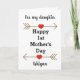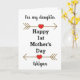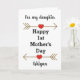 Une carte de 1ère fête des mères pour fille, que vous pouvez facilement personnaliser avec son nom. Caractéristiques flèches scintillantes avec des cœurs. À l'intérieur de cette carte de 1ère fête des mères joyeuse pour fille est inscrit un message sincère, que vous pouvez également modifier facilement. Le dos de cette carte moderne de première fête des mères comporte la même flèche et les mêmes cœurs où vous pouvez personnaliser l'année.