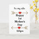Une jolie carte de 1ère fête des mères pour sœur, que vous pouvez facilement personnaliser avec son nom. Caractéristiques flèches scintillantes avec des cœurs. À l'intérieur de cette carte de 1ère fête des mères pour sœur est écrit un message sincère, que vous pouvez également modifier facilement. Au dos de cette carte moderne de première fête des mères figure la même flèche et les mêmes cœurs où vous pouvez personnaliser l'année.