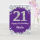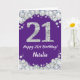 Joyeuse 21e Anniversaire Carte de Parties scintillant violet et argent avec nom personnalisé. Pour plus de personnalisation, cliquez sur le bouton "Customiser" et utilisez notre outil de conception pour modifier ce modèle.