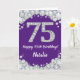 Joyeuse 75e Anniversaire Carte de Parties scintillant violet et argent avec nom personnalisé. Pour plus de personnalisation, cliquez sur le bouton "Customiser" et utilisez notre outil de conception pour modifier ce modèle.