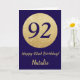 Joyeuse carte de Parties scintillant bleue et or 92e anniversaire Navy avec un nom personnalisé.Pour plus de personnalisation, cliquez sur le bouton "Customiser" et utilisez notre outil de conception pour modifier ce modèle.