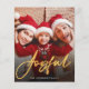 Il s'agit d'une carte de vacances économique, design et moderne imprimée sur une feuille de papier plat, utilisant un simple design photo avec "Joyful" dans un élégant script manuscrit doré. Modifiez facilement la photo à l'avant et retirez le nom de famille ou d'entreprise à l'aide des options de modèle fournies. Veuillez contacter le concepteur pour toute question ou problème concernant ce design ou pour tout produit correspondant.