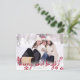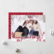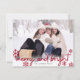 Un carte photo de vacances moderne et plat avec le texte "joyeux & lumineux" en police calligraphie, des flocons de neige et un motif en chevron rouge et blanc. Personnalisez avec vous vos propres photos et textes.