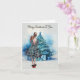 Carte Joyeuse femme de Noël et arbre de Noël bleu