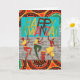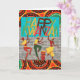 Carte de voeux en papier Happy Kwanzaa avec une illustration de gens dansant avec un batteur et des motifs colorés. Illustration brillante et colorée avec des motifs d'inspiration africaine et un message joyeux. Ajoutez votre propre message à l'intérieur si vous le souhaitez. Copyright © Shoaff Ballanger Studios, 2022.