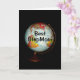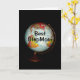 Un globe antique coloré, photographié sur un fond noir est le sujet de ma carte de fête des mères "Joyeuse fête des mères à la meilleure belle-mère sur Terre !". "Meilleure belle-mère" en lettres noires sur la face du globe complète la carte.