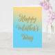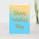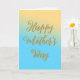 Une élégante carte de vœux avec un message de Bonne Fête des Mères, à la fois sur le devant et à l'intérieur de la carte. Le fond est un dégradé ombré de couleurs, du jaune au bleu turquoise.