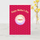 Bonne carte de fête des Mères avec un beau tournesol aux teintes pastel multicolores et le mot MOM au centre sur un arrière - plan rouge avec motif coeur magenta.