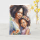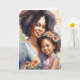 Belle illustration d'une mère afro-américaine tenant sa fille avec des fleurs dans ses cheveux dans un joli aquarelle d'art. Carte de la Fête des Mères heureuse avec un message personnalisé à l'intérieur.
