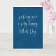 Nous vous souhaitons une très Joyeuse Fête des Pères ! Cette carte simple et élégante est parfaite pour tout papa, grand-père ou figure paternelle. Personnalisez le message à l'intérieur de cette carte moderne de Fête des Pères pour un effet personnalisé. L'écriture blanche sur le devant est moderne et chic sur le fond bleu texturé. L'intérieur présente un texte bleu coordonné. Trouvez plus de styles et de couleurs par Lea Delaveris Design.
