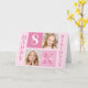 Carte d'anniversaire carrée 2 photos cool pour une petite fille ou un tout-petit. Célébrez l'anniversaire de votre enfant avec de mignonnes photographies d'eux sur cette carte postale photo personnalisable avec de jolis carrés roses adorables. Ajoutez leur nom et âge.