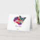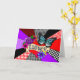 Carte de la Saint-Valentin. Joli cœur rouge avec des roses violettes, des fleurs roses, un papillon bleu et un fond de style pop art. Personnalisez l'intérieur de la carte avec votre propre message personnel.