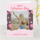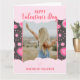 Partagez l'amour cette Saint-Valentin avec cette carte romantique et féminine facilement personnalisable avec votre nom, photo et message pour la rendre vraiment unique ! Elle présente un design fantaisiste en forme de cœur et inspiré des fleurs dans des tons roses vibrants sur un fond gris foncé chic. Ce motif féminin et ludique comprend des formes de cœur, des éléments floraux délicats, des accents feuillus et des points charmants, ce qui en fait la carte de la Saint-Valentin parfaite pour vos amis, votre famille et votre proche.
