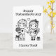Carte de Saint-Valentin personnalisée avec un garçon et une fille se tenant la main le jour de la Saint-Valentin. Pages de coloriage simples et faciles de tous les côtés.
