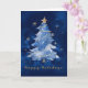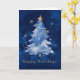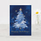Cette élégante carte Happy Holidays présente un magnifique arbre de Noël couleur marine, enveloppé d'un ruban doré et surmonté d'une étoile dorée, entouré de délicats flocons de neige couleur or sur un riche arrière - plan bleu. Parfait pour envoyer des salutations de vacances chaleureuses avec une touche de Noël raffinée, classique et élégante. (L'OR EST NUMÉRIQUEMENT CRÉÉ SEULEMENT)