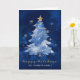 Envoyez des salutations de vacances élégantes avec cette magnifique carte de Noël bleu marine avec un arbre de Noël aquarelle enveloppé de ruban doré et surmonté d'une étoile d'or. Entouré de délicats flocons dorés sur un arrière - plan bleu profond, ce design exhale une élégance hivernale raffinée. Parfait pour envoyer des voeux de vacances chaudes d'un individu, couple, ou famille qui aime les conceptions de Noël intemporelles et classe.