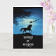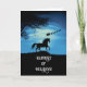 Une belle carte de vacances pour les amateurs de chevaux avec une belle silhouette de cheval dansant contre le ciel étoilé pendant que Père Noël fait ses tours. Une image fantaisiste, magique et festive !