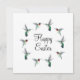 Jolie carte "Joyeuses Pâques" avec des colibris à gorge rubis sur fond blanc.
