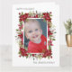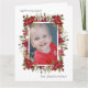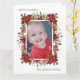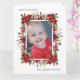 Carte de voeux pliée "Happy Holidays" moderne et élégant. L'avant de cette belle carte a des poinsettias rouges et de la verdure sur un arrière - plan blanc, et est personnalisée avec votre photo préférée. Texte, qui dit, "Joyeuses Fêtes" et inclut votre nom de famille est entièrement personnalisable. L'intérieur de cette carte est rouge et blanc et a un message personnalisé et votre nom. Contactez-nous pour obtenir de l'aide sur vos personnalisations ou pour demander des produits correspondants ou coordonnés.