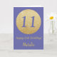 Joyeuse 11e Anniversaire et Carte Parties scintillant Or avec nom personnalisé. Pour plus de personnalisation, cliquez sur le bouton "Customiser" et utilisez notre outil de conception pour modifier ce modèle.
