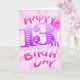 13ème carte d'anniversaire heureuse. Couleur : En grande partie roses et pourpres. Intérieur de salutation : Le joyeux anniversaire, mai ce jour soit toujours spécial à se rappeler.