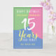 Célébrez un anniversaire avec une carte personnalisée indiquant le nom du récipiendaire, le nombre d'années et la date. Ajoutez également un message à l'intérieur. Carte d'anniversaire pour un 15 ans.