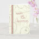 Carte de joyeux 15e anniversaire de mariage en rouge élégant et beige avec un design tourbillonnant moderne.