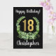 Joyeux 18e anniversaire Son moderne Gold Wreath Name Card. Customisez le nom du destinataire à l'avant et les messages d'accueil à l'avant et à l'intérieur.