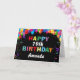 Joyeux 19e anniversaire Ballons colorés Confetti Carte Noir avec nom personnalisé. Pour plus de personnalisation, cliquez sur le bouton "Customiser" et utilisez notre outil de conception pour modifier ce modèle.
