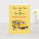 Une carte parfaite pour votre petite-fille le 1er jour de l'école en 3ème, avec un bus scolaire jaune ensoleillé avec des enfants à bord et des enfants attendant de monter. L'autobus scolaire oeuvre originale de délicieuses gribouillages, les enfants oeuvre originale de Primsy Resale et MarloDeeDesigns.
